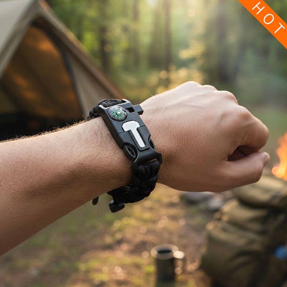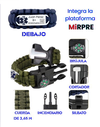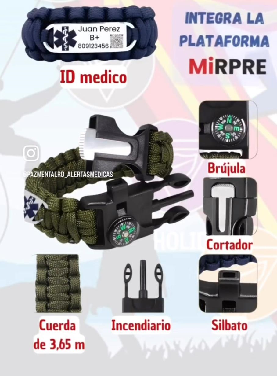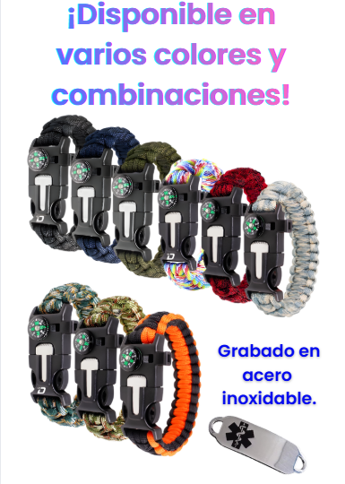 Paracord BÁSICO+ material de acero inoxidable quirúrgico 316L. Características destacadas: El kit de supervivencia para acampar al aire libre 6 en 1 más nuevo de 2025 con pulsera con placa de identificación médica MIRPRE, brújula incorporada, silbato y material de paracord. Ideal para navegación al aire libre, señalización de emergencia y supervivencia. Hecho de poliéster ecológico, el diseño portátil multifuncional es adecuado para niños de 5 años en adelante.