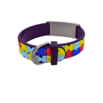 Pulsera infantil para niños con autismo, con una placa de acero inoxidable y un símbolo rojo. Tamaño: 14 mm de ancho, largo 1 talla para todos.